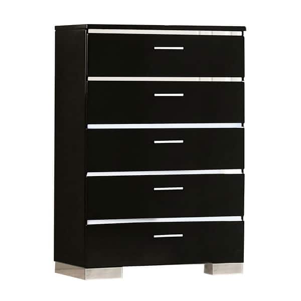 High Gloss Lacquer Coated 5 Drawer Chest With Bracket Feet Black And Chrome On Sale Overstock 32904441